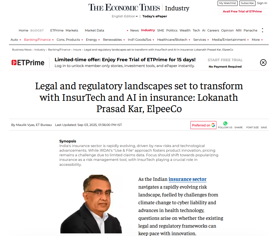 Legal and regulatory landscapes set to transform with InsurTech and AI in insurance: Lokanath Prasad